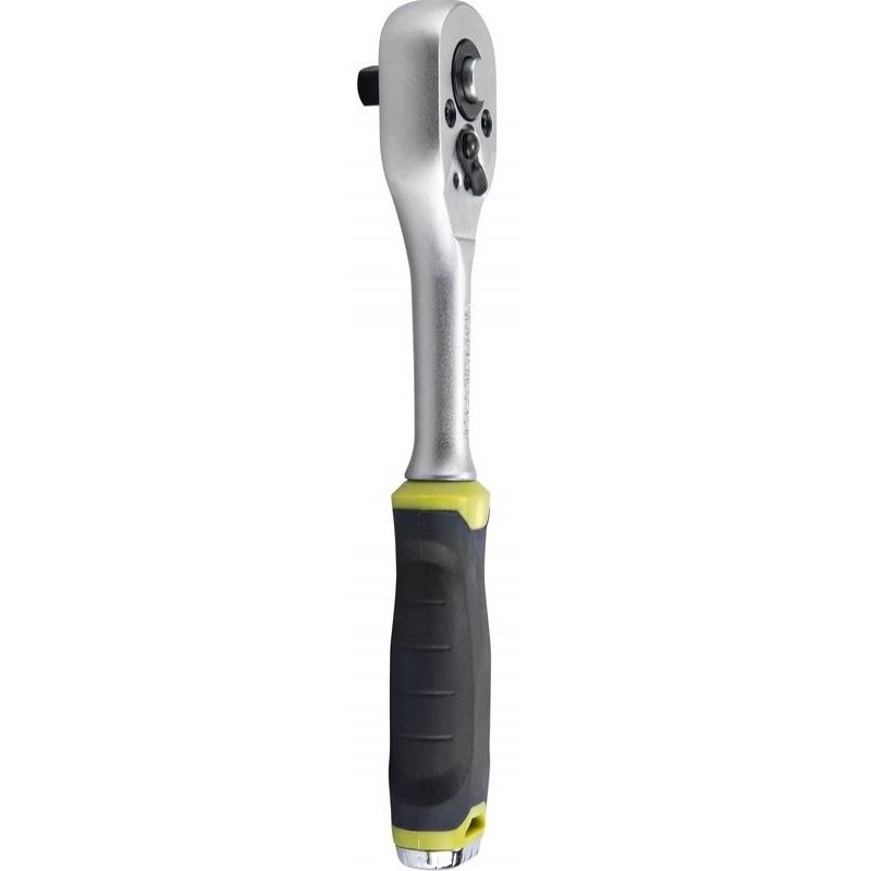 Vsˇechny mechanicke´ pracovní části uvnitř ráčny jsou z CrV rukojeť v kombinaci tvrde´ho plastu s měkky´m pryžovy´m gripem.