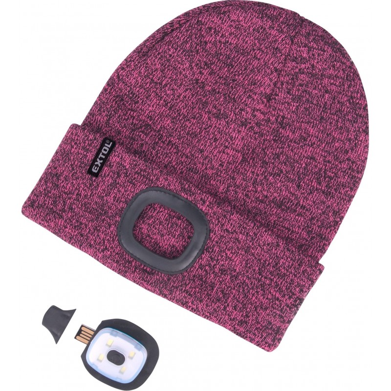 EXTOL LIGHT čepice s čelovkou 4x45lm, USB nabíjení, fialová/černá, univerzální velikost 43461