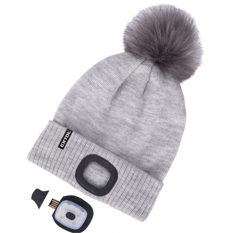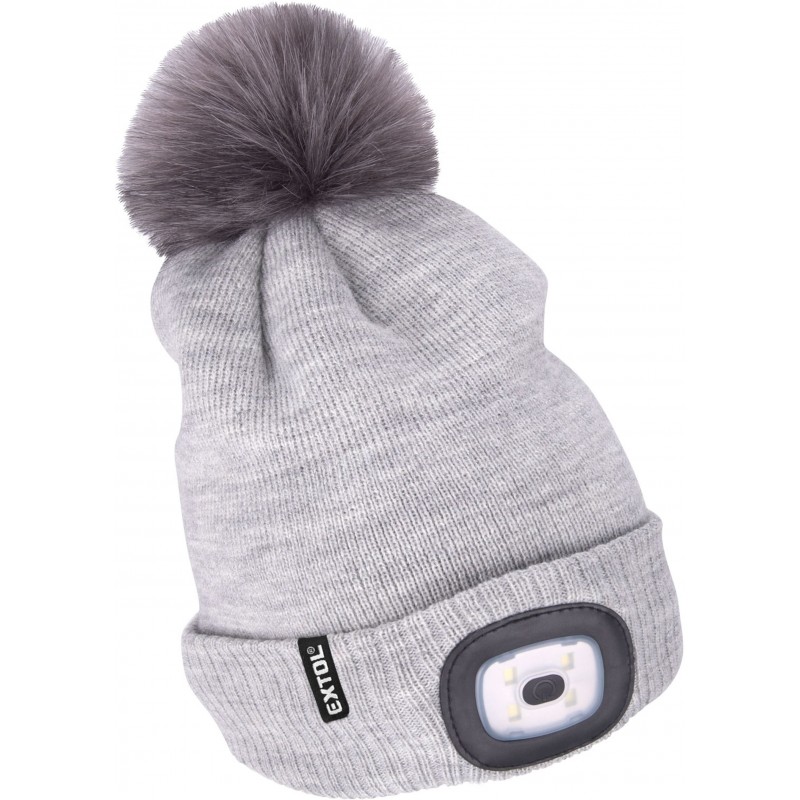 EXTOL LIGHT čepice s čelovkou 4x45lm, USB nabíjení, světle šedá s bambulí, univerzální velikost 43465