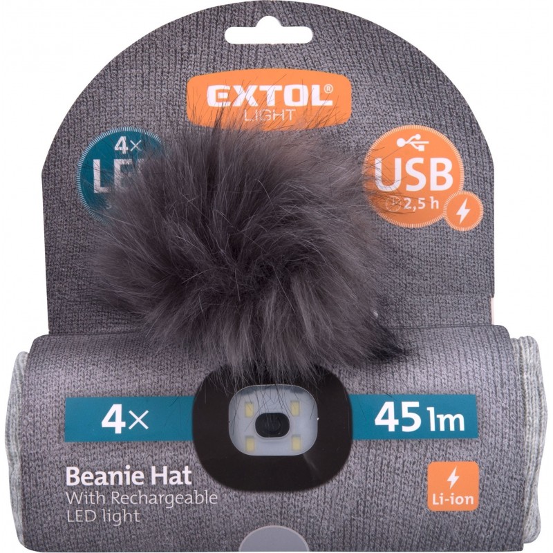 - Magyarországra történő szállítás EXTOL LIGHT sapka fejlámpával 4x45lm, USB töltés, világosszürke pomponnal 43465