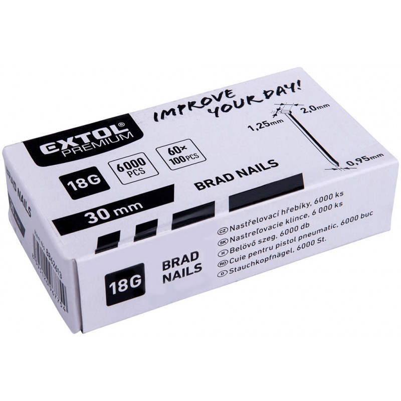 EXTOL PREMIUM hřebík nastřelovací, 6000ks, 30mm, 18G, typ F, hlava 2mm, 1,25x0,95mm 8862613