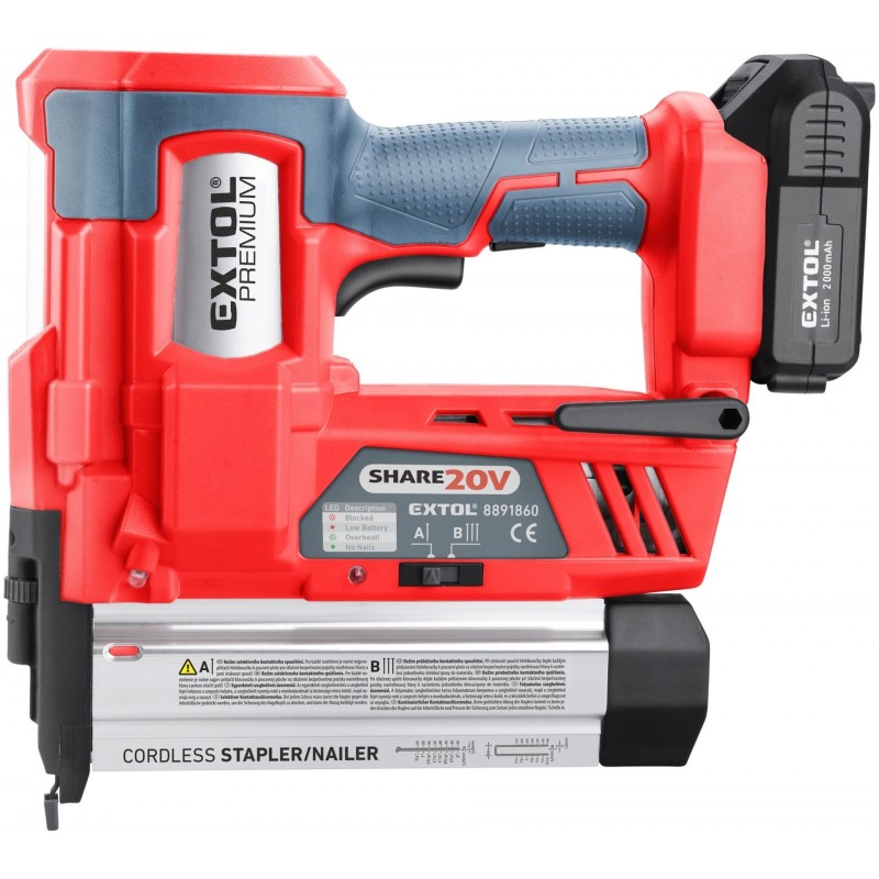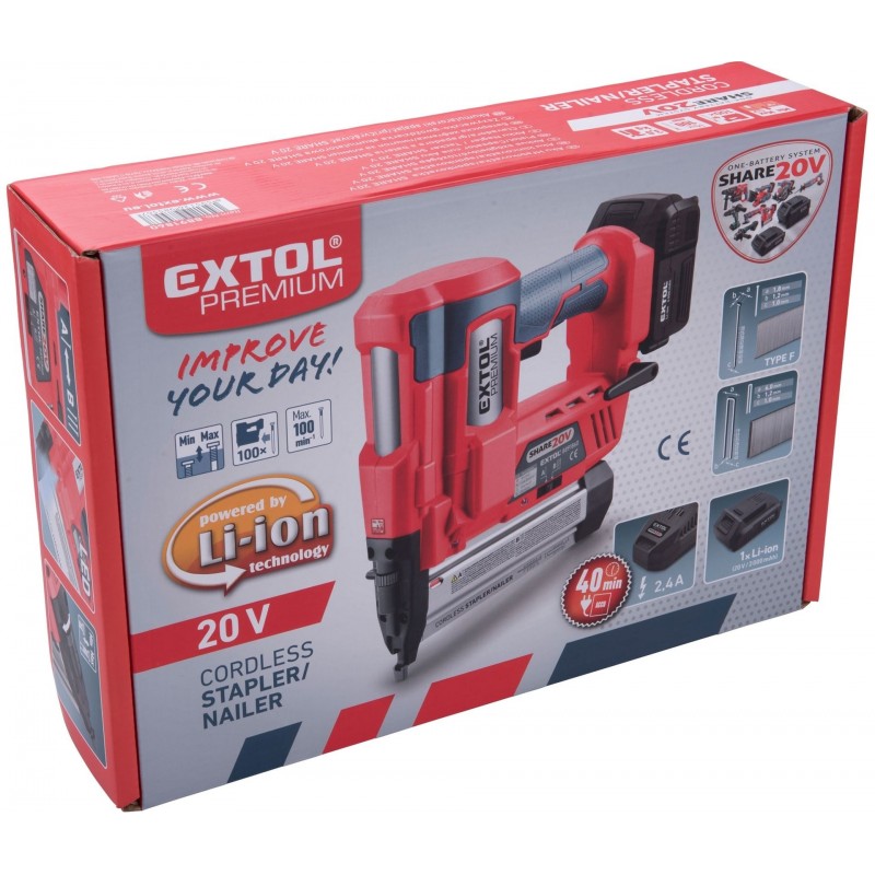 EXTOL PREMIUM hřebíkovačka/sponkovačka aku SHARE20V, 20V Li-ion, 2000mAh 8891860
