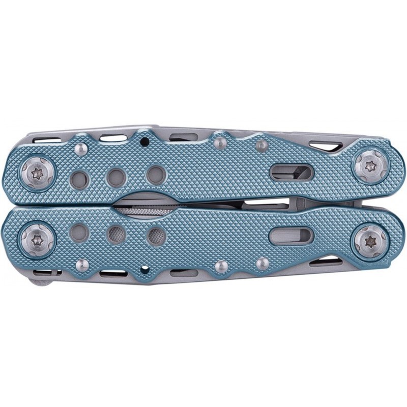 z nerezové oceli, složení: kleště, pilník+5.5mm plochý šroubovák, pilka, střenka nože, malý nožový bodec,šroubováky PH1+plochý 3mm, otvíráky na konzervy+na láhve