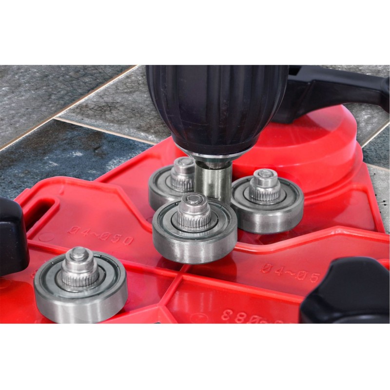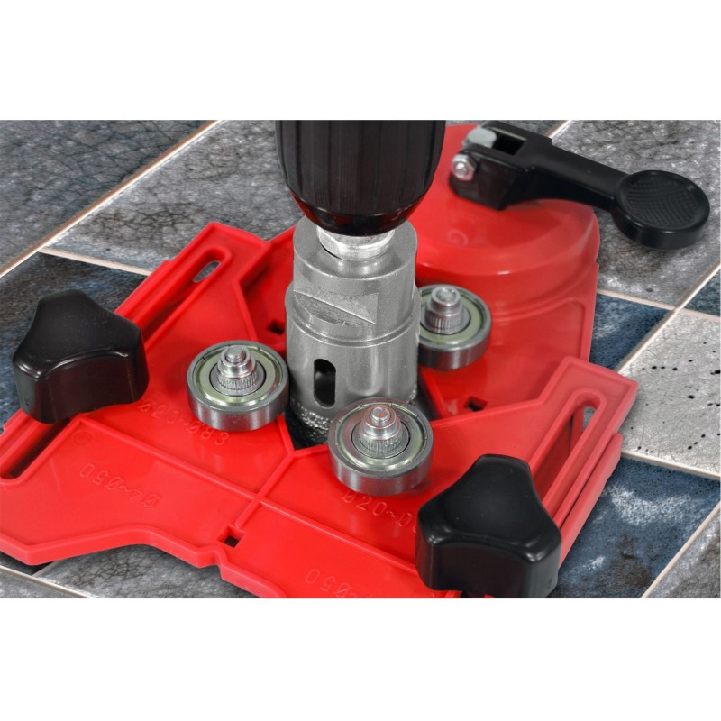 • šablona z kvalitního ABS plastu je nastavitelná v rozsahu průměrů 4-83mm a lze ji použít k vrtání děr do stavebních obkladových materiálů, dlažby, keramiky, skla atd.