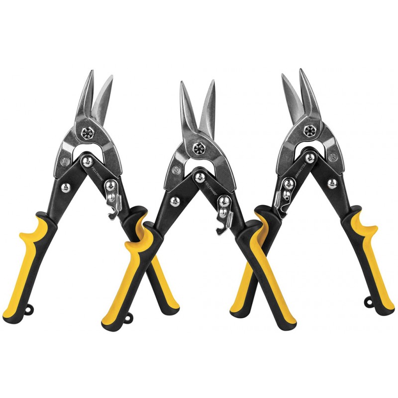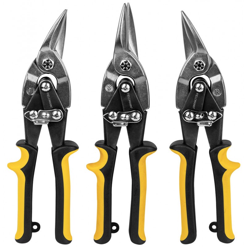 Pro menší práce na vaší zahradě, v dílně nebo kolem domu jistě najdete uplatnění tento 3 dílný set nůžek na plech značky FIELDMANN. V sadě naleznete nůžky na pravé, levé a rovné stříhání plechů a tvrdých materiálů, potrubí, kovů a dalšího podobného materiálu. Masivní a ergonomicky tvarovaná držadla se postarají o pohodlné držení. Na vyvedení čepele byla použita kvalitní kovaná ocel. Délka nůžek činí 250 mm při hmotnosti 0,4 kg/ks.