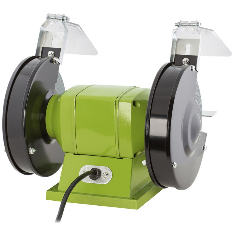 Do každé dílny se perfektně hodí tato stolní bruska. S 2 dodanými kotouči v různé zrnitosti zvládne jemnější i hrubší broušení. S vhodným 150mm kotoučem lze i leštit nebo precizně ostřit. Oceníte pevnou konstrukci díky hliníkovému podstavci který lze snadno uchytit k Vaší pracovní desce či stolu. Každý kutil též ocení ochranné kryty přes kotouče pro zajištění maximální bezpečnosti.Klíčové vlastnosti: