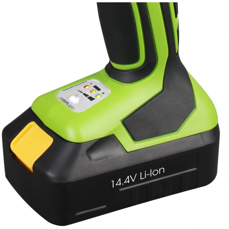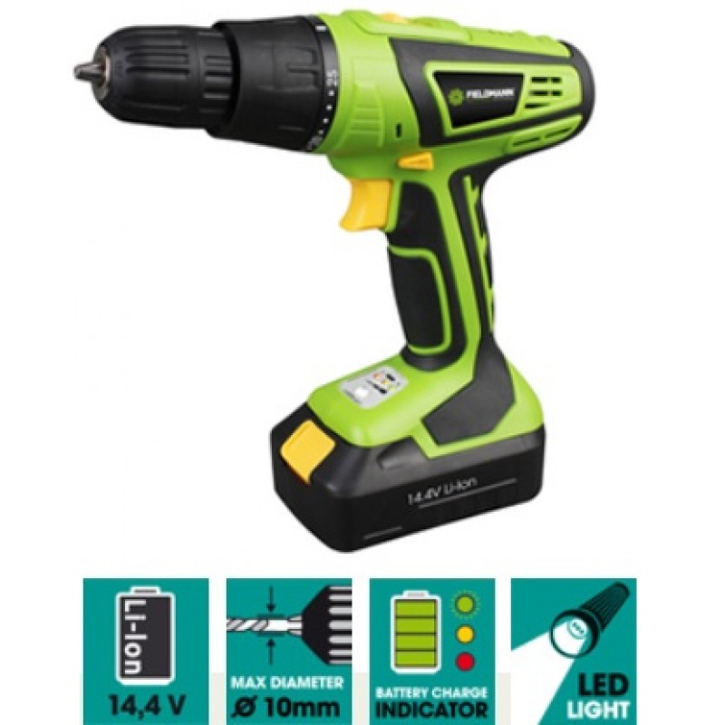 Při práci s akumulátorovou vrtačkou Fieldmann pohodlně dosáhnete kamkoliv, nejste nijak omezeni délkou přívodního kabelu, protože chod zajišťuje Li-Ion baterie 14,4 V.