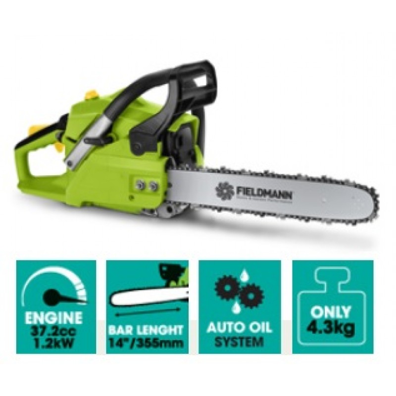 Lehká benzínová pila vhodná nejen k přípravě palivového dřeva, ale i k prořezávání vzrostlých stromu. Objem dvoutaktního motoru je 37 cm3, lišta Fieldmann o délce 355 a řetěz s dělením .325´, 1.5 mm umožňuje pohodlnou manipulaci s pilou. Tento model je vybaven také pumpičkou pro nástřik paliva, která společně se systémem zapalování C.D.I. výrazně usnadňuje starty studeného motoru i v chladnějších obdobích roku. Balení obsahuje kalibrovanou nádobu pro správné namíchání palivové směsi sadu nářadí a náhradní svíčku. Samozřejmostí je bezpečnostní brzda řetězu a automatická olejová pumpa.