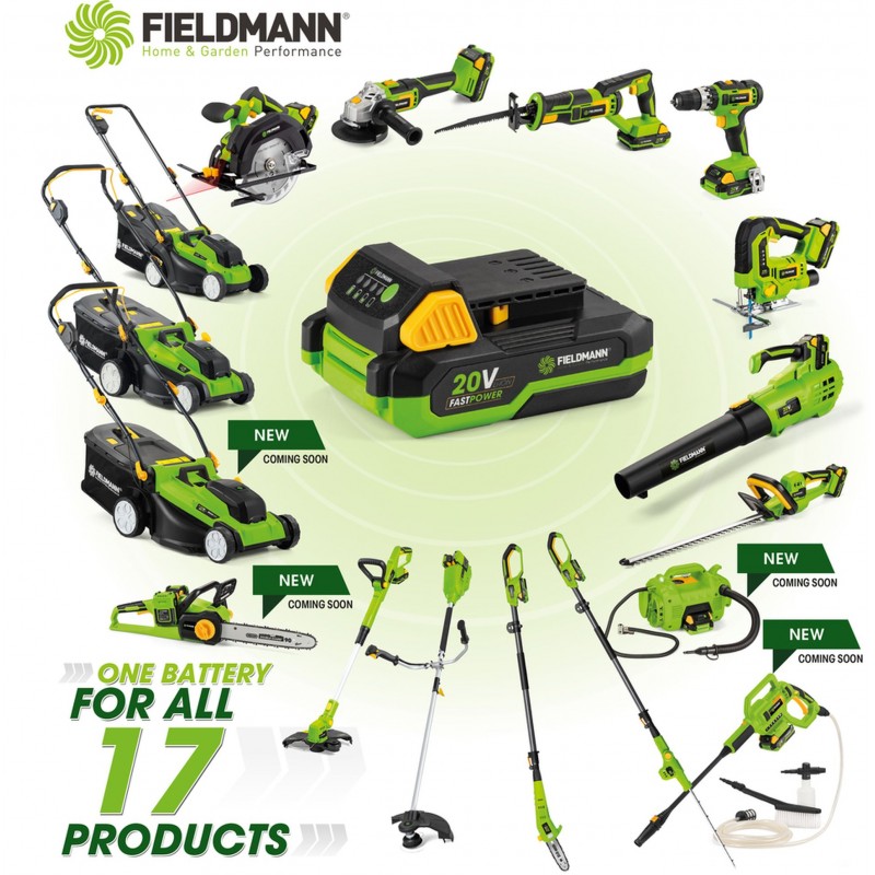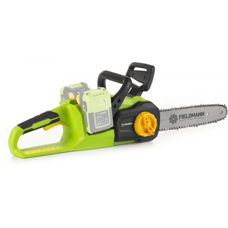 Prémiový model akumulátorové pily značky FIELDMANN si poradí s každou výzvou, ať už potřebujete nařezat dříví na topení nebo pokácet strom, tento stroj to zajisté zvládne. Díky bezuhlíkovému motoru s dlouhou životností má tato pila nulové nároky na údržbu. Bezpečnostní obouruční spínaní brání náhodnému zapnutí. O další prvek bezpečnosti se stará elektronická brzda chodu, díky které je tato pila vybavena nejvyšším stupňem bezpečnosti ve své třídě. Díky komfortním změkčeným zónám se pila dobře drží a neklouže ani ve zpocené v ruce. Pila dosahuje vysokého výkonu díky plnému využití síly 2x 20V akumulátorů ve spojení s elektronickou řídící jednotkou. Je možno použít akumulátory o kapacitách 2Ah/4Ah které jsou kompatibilní do všech výrobků společnosti FIELDMANN řady FAST POWER20V.