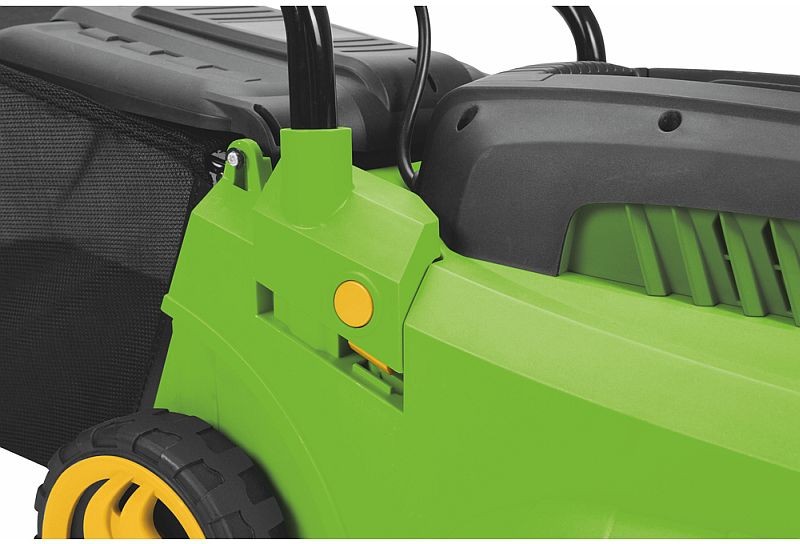 Lehká, snadno ovladatelná elektrická sekačka s elektromotorem o příkonu 1 000W a záběrem 32 cm.- Výška sečení je nastavitelná ve 3 polohách.