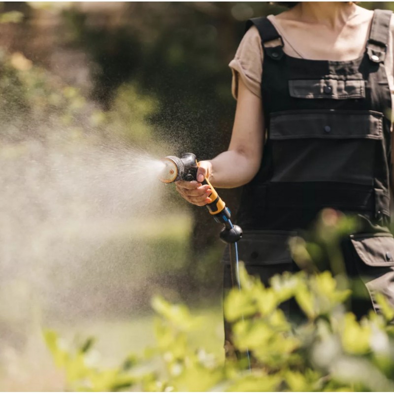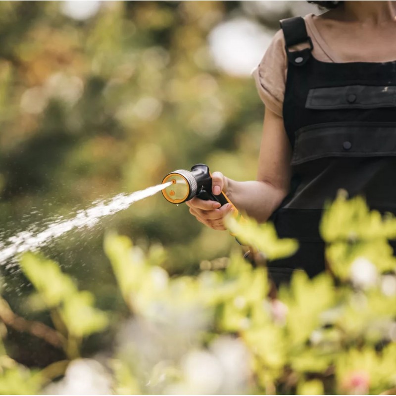 FISKARS Comfort třífunkční pistole nabízí ergonomický design a SoftGrip™ rukojeť pro bezpečné a pohodlné držení. Otočením sprchové hlavy snadno nastavíte proudový, mlhový nebo sprchový postřik. Díky přednímu ovládání s možností zajištění průtoku je každé zalévání precizní.