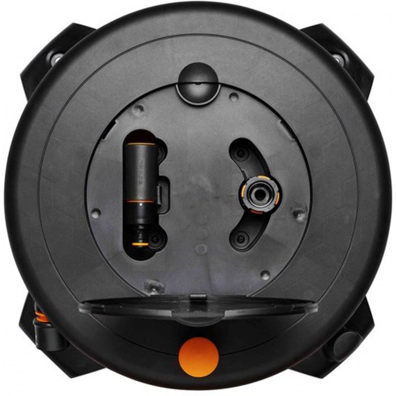 • Integrovaná skříňka v tělese bubnu obsahuje nastavitelnou zavlažovací koncovku a univerzální spojku na vodovodní kohoutek