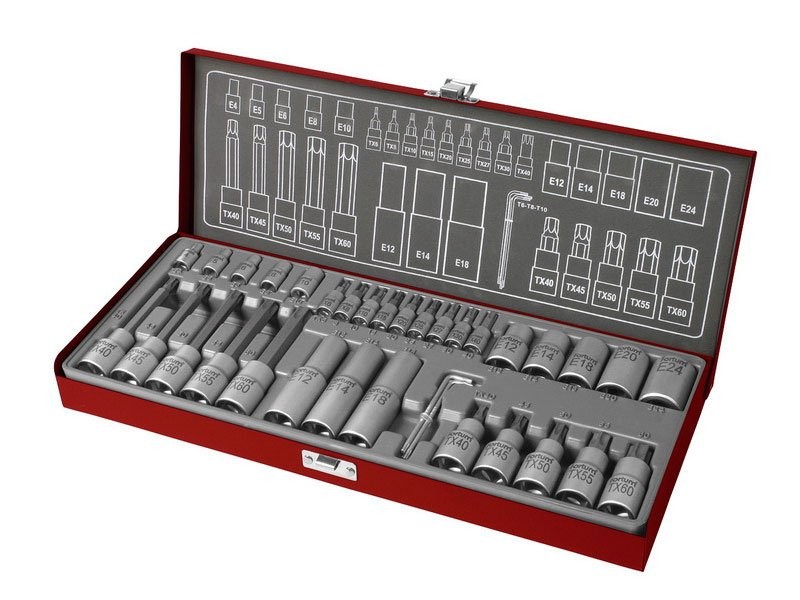 FORTUM klíče nástrčné a zástrčné TORX, sada 35ks 1/4", 1/2" 4700009
