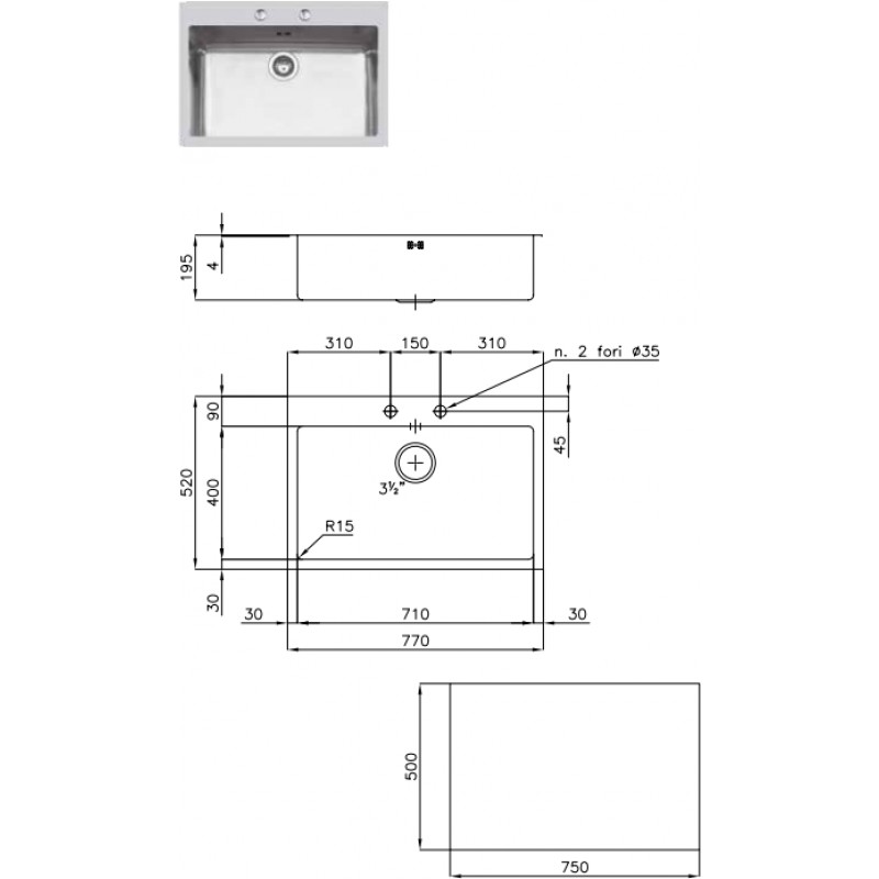 - 2 otvory prům. 35 mm (pro baterii, dávkovač nebo excentrické ovládání výpusti)