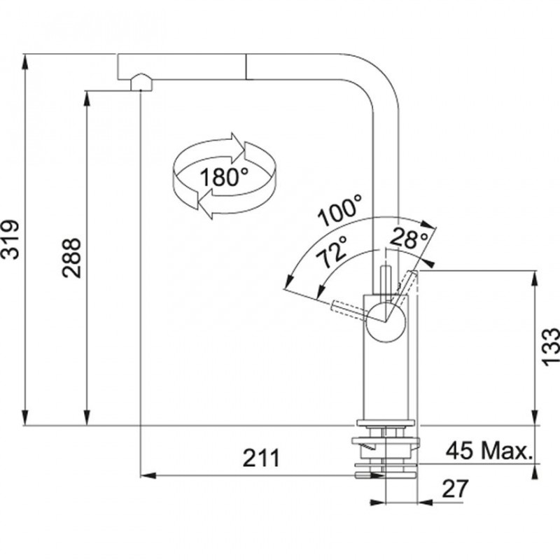 Stojánková tlaková baterie Franke FN 9612.031 v klasickém chromovém provedení. Baterie má výsuvnou koncovku a je otočná o 180°.• Provedení: chrom