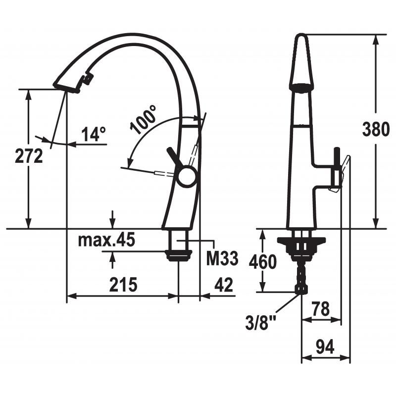 Stojánková tlaková baterie Franke KWC Zoe v nerezovém provedení.Baterie má vytahovací koncovku s přepínačem na sprchu.Technické údaje: