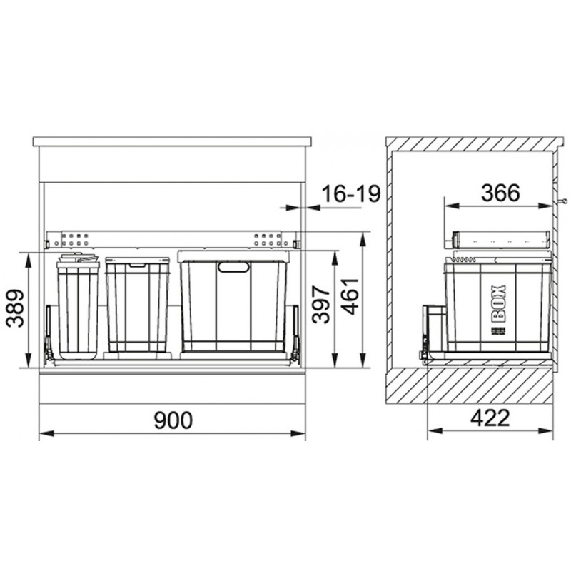 • Výsuvná zásuvka nad košem v ceně koše