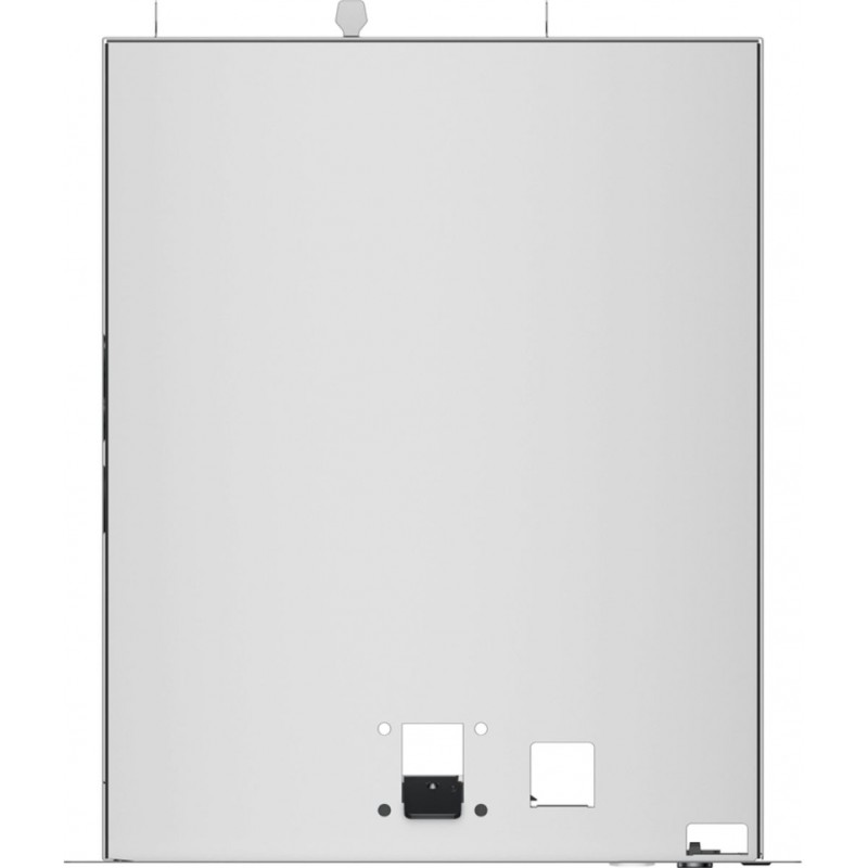 Vestavný odsavač par Box Flush Evo. Provedení matná bílá (NCS S 0500-N). Energetická třída B. Tlačítkové ovládání. Štěrbinové odsávání. 3 Stupně výkonu. Intenzivní stupeň.