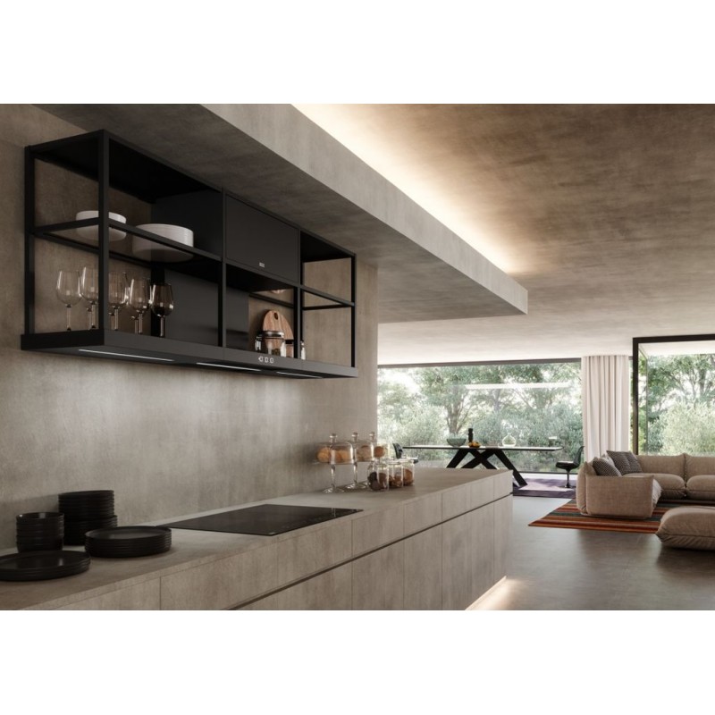 Komínový odsavač par Maris Modular. Provedení matná černá (NCS S 9000-N). Energetická třída A. Tlačítkové ovládání. Štěrbinové odsávání. 3 Stupně výkonu. Intenzivní stupeň. Ukazatel nasycení filtru. Sound Pro. Možnost odtahu dozadu. Centrální modul je možné rozšířít pomocí přídavného regálového modulu a to umístěním na jednu nebo obě strany. Můžete si tak vytvořit řešení podle vašeho prostoru.