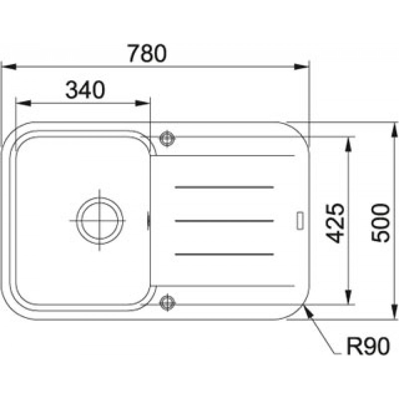 Dřez: 340 x 425 x 200 mm