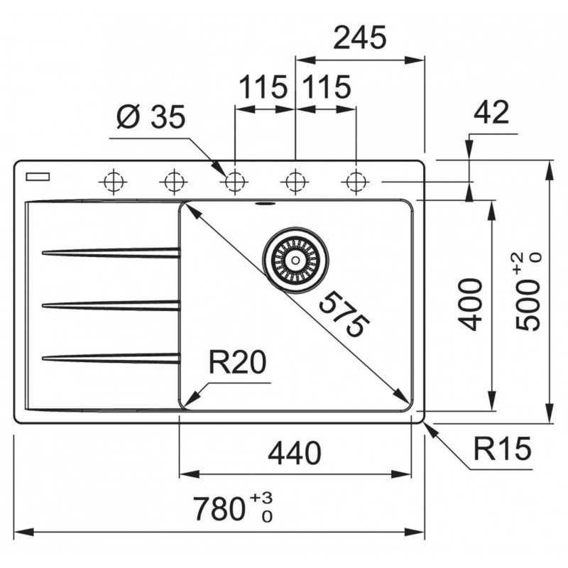 • Dřez: 440 × 400 × 200 mm