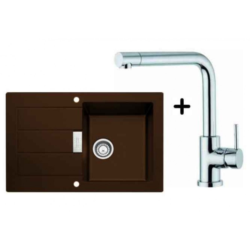 Franke SET T14 tectonitový dřez SID 611-78 hnědá + dřezová baterie Samoa