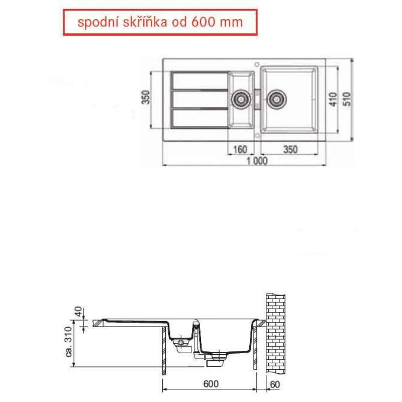 - dřez je dodáván s kompletním příslušenstvím včetně sifonu pro úsporu místa s odbočkou pro myčku
