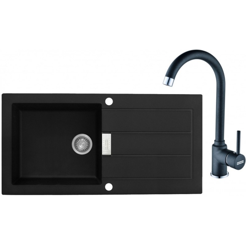Franke SET T27 tectonitový dřez SID 611 černý + baterie FP 9900 černá 114.0366.033