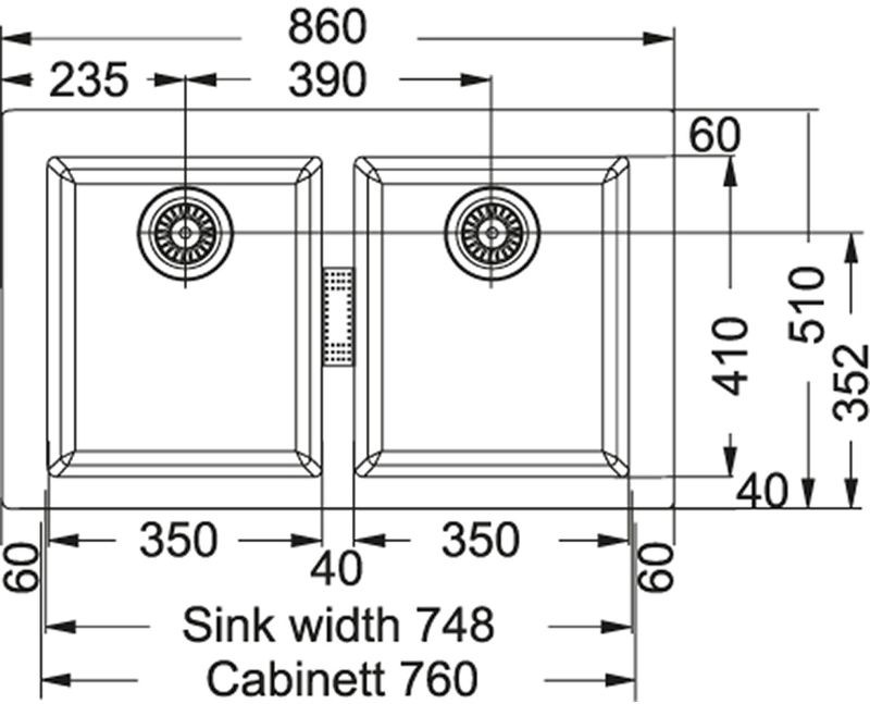 - Délka dřezu: 860 mm