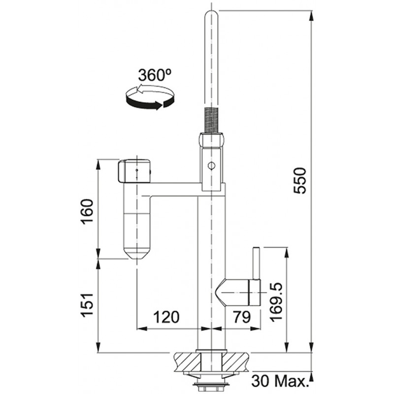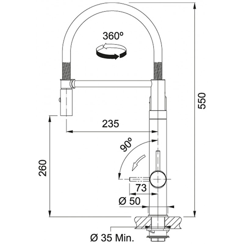 Stojánková tlaková baterie Franke Vital Capsule Filter Tap ve variantě se sprchou na pružině. Baterie je otočná o 360°.Součástí baterie je kompletní příslušenství k montáži. Není třeba nic dokupovat.