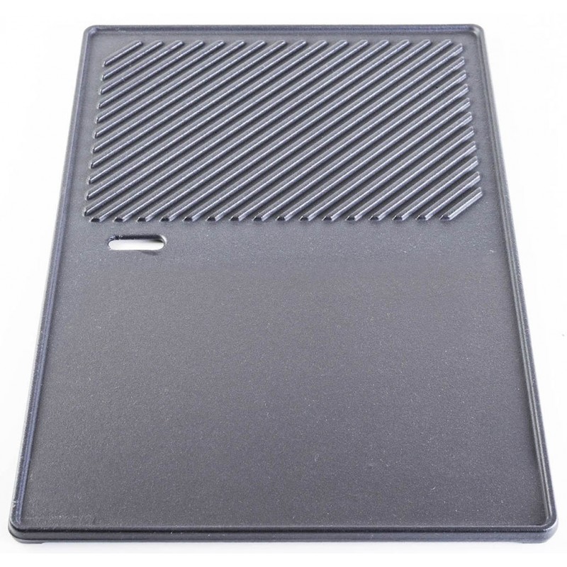 Litina patří mezi nejodolnější materiály, které se pro grilování používají. Je vysoce odolná proti vysokým teplotám a poškrábání. Na každé polovině litinového plátu máte k dispozici jiný druh povrchu. Jedna polovina je hladká a využijete ji především pro grilování nakrájené zeleniny, vajíček a sýrů. Druhá polovina s vroubky je určena pro správné grilování steaků, větších kusů zeleniny a ryb.