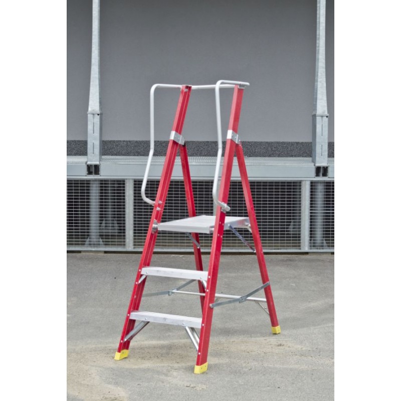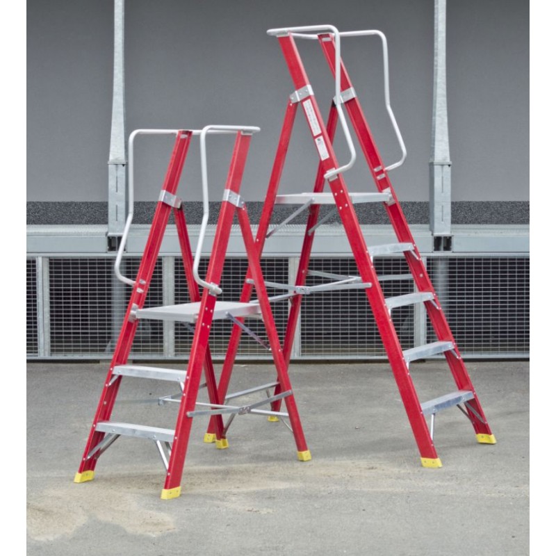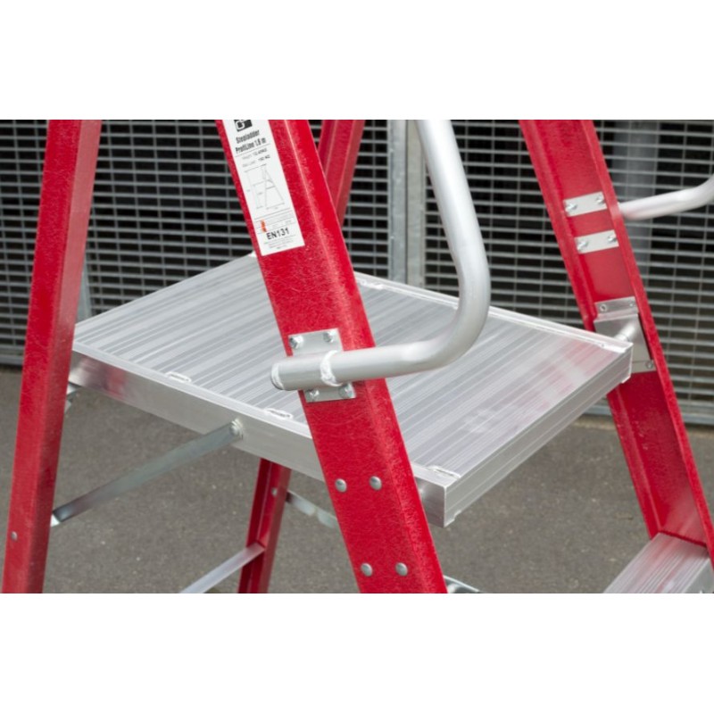 Jednostranné pracovní schůdky G21 ProfiLine jsou s oblibou využívány pro montážní práce v různých řemeslných odvětvích, v úklidových službách nebo ve skladech.Stabilní konstrukce schůdků o hmotnosti 12,8 kg je vysoká 180 cm s 2 nášlapnými stupni a plošinou ve výšce 86 cm. Bočnice jsou vyrobeny z kvalitního sklolaminátu, který je odolný proti povětrnostním vlivům, korozi a je strukturálně stálý. Na bočnicích jsou umístěna pevná jistící držadla pro snadný výstup a stání při práci.