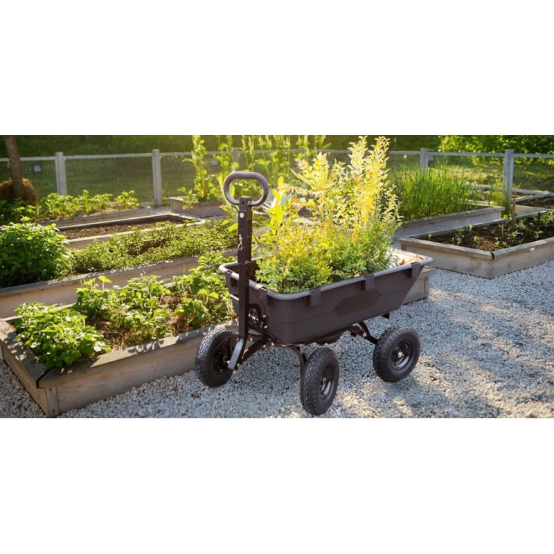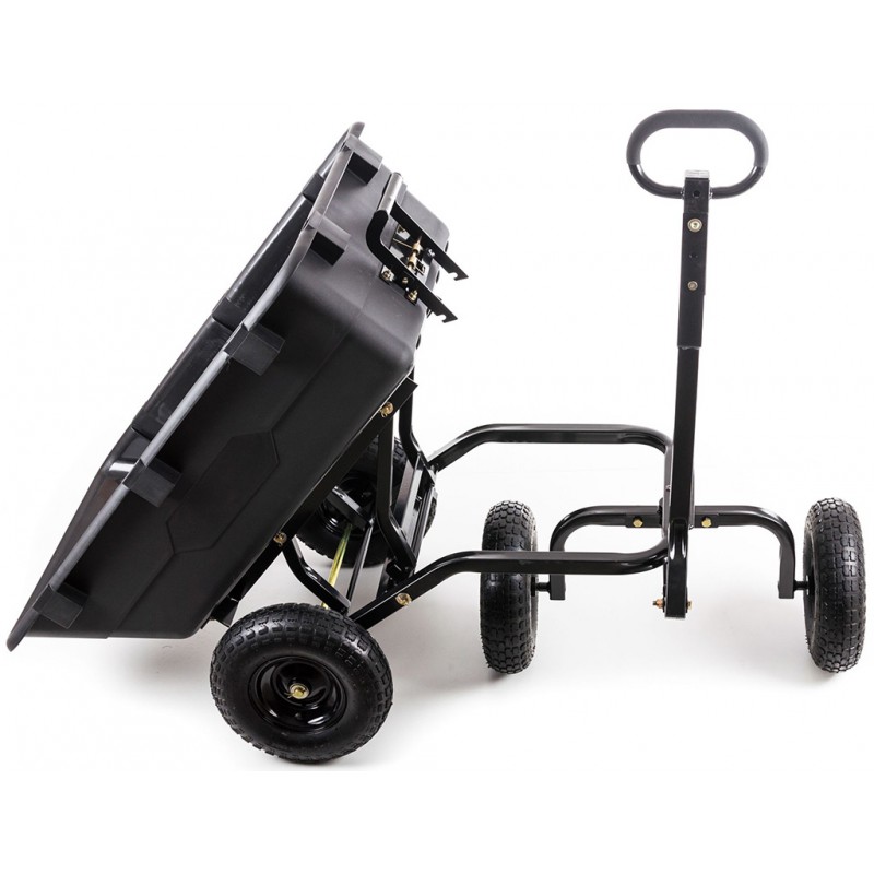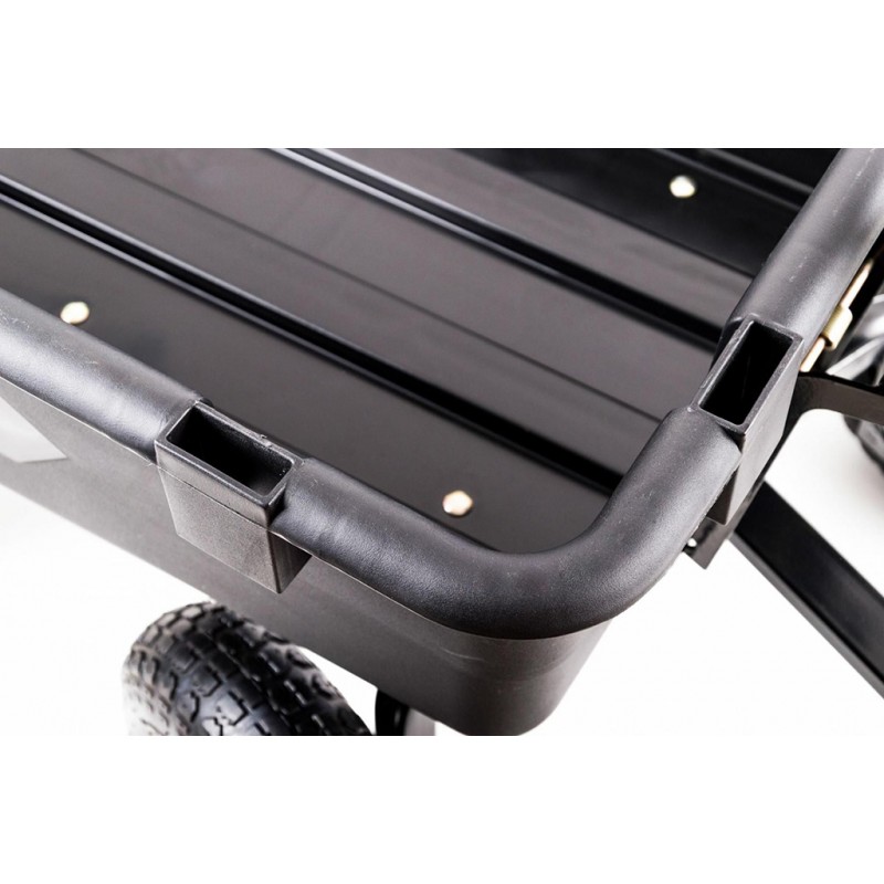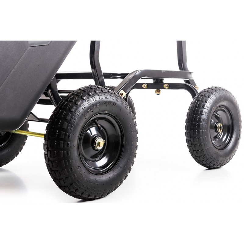 Zahradní vozík G21 GA 120 má praktickou sklápěcí nepropustnou korbu o objemu 120 l, nosnost 600 kg a 4 nafukovací kola na dvou nápravách, z nichž jedna je řídící. Vozík se díky tomu snadno ovládá a velmi snadno a pohodlně se s ním manipuluje.