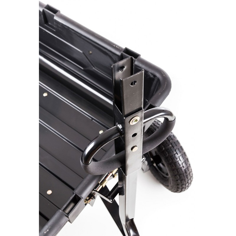 Pevná korba z tvrzeného odolného plastu je vhodná pro převážení pevných, polotekutých či sypkých materiálů. Prakticky řešený výklopný mechanismus usnadní manipulaci při vykládce. Vodicí tyč s rukojetí lze navíc snadným krokem změnit v závěsnou oj a vozík připevnit za zahradní traktor. Celkově je zahradní vozík G21 GA 120 velmi dobře řešeným vozíkem, který díky použitým odolným materiálům, bytelné konstrukci a praktické sklápěcí korbě o objemu 120 l zastane většinu těžké práce při přesouvání a převážení břemen s hmotností až do 600 kg.