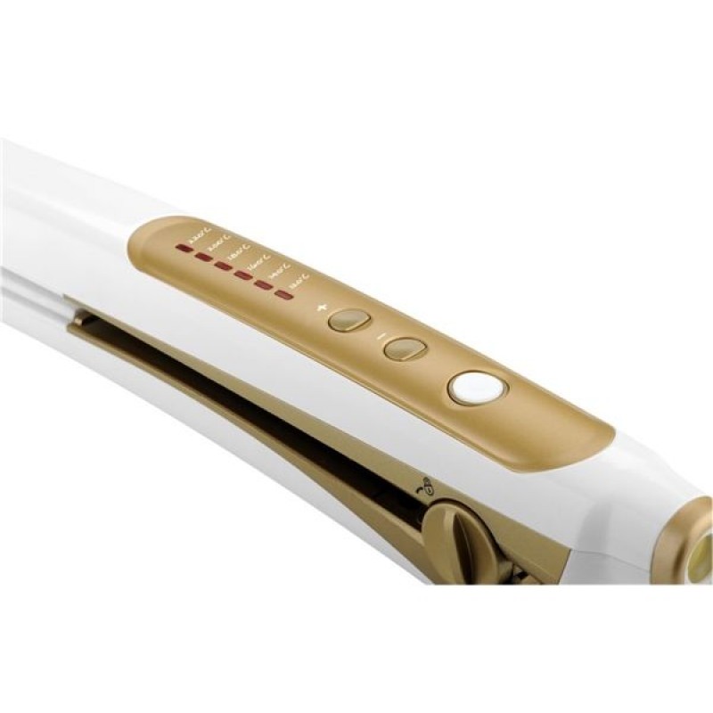 Zásluhou plynulé regulace teploty v rozsahu 120 – 220 °C dosáhnete dokonalých výsledků, bez obav z poškození vlivem příliš vysokých teplot.