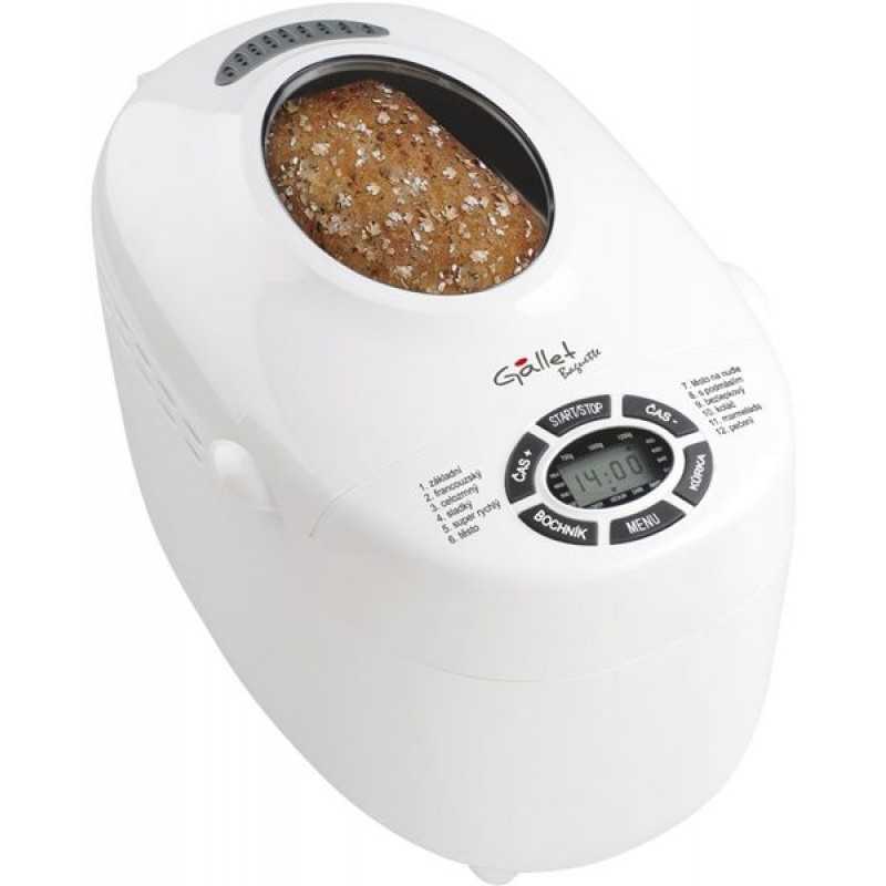 S pekárnou chleba Gallet MAP 205 Baguette prostě zmáčkněte čudlík a za pár hodin se vám celý byt provoní vůní čerstvého chleba. Celkem 12 předvolených programů pro pečení různých druhů chleba, přípravu těst či marmelády. Vyberete si ze tří velikostí bochníků a také ze tří stupňů zbarvení kůrky.