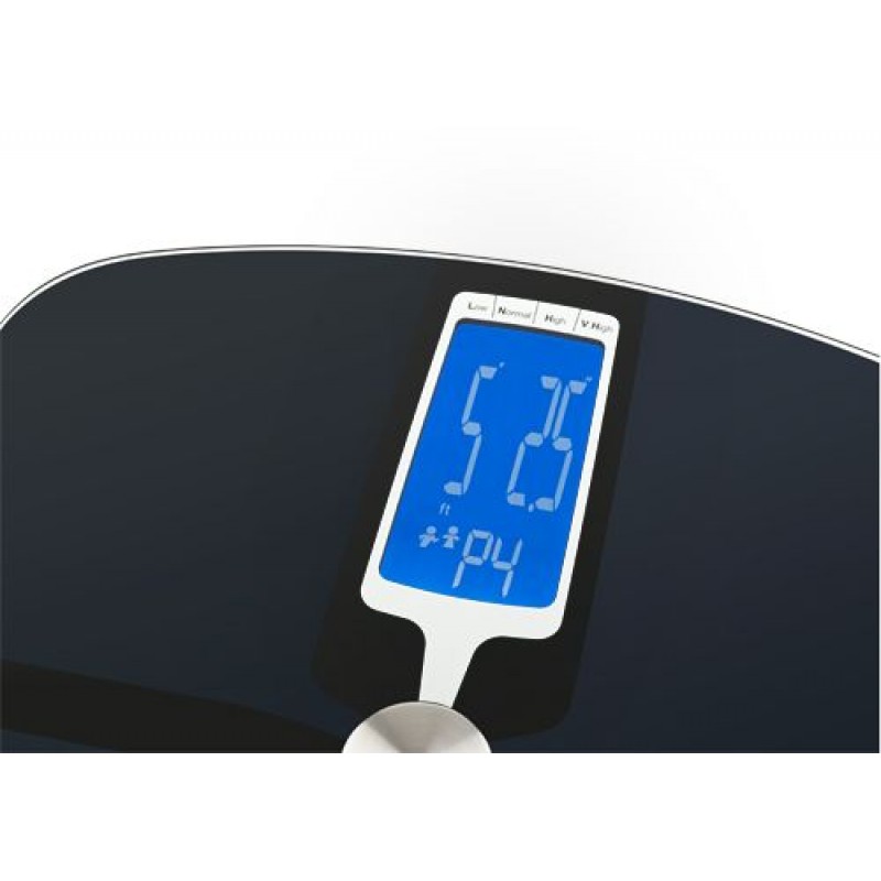 Naměřené údaje se zobrazí na velkém LCD displeji. Do paměti lze uložit až 4 osobní data pro jednotlivé uživatele. Nášlapná plocha je tvořena 6 mm bezpečnostním sklem. Jakmile na ni stoupnete, váha se automaticky zapne, provede vážení a následně se i po 10 sekundách automaticky vypne. Nepostrádá indikátor přetížení, či slabé baterie. Provoz zajišťují 4 baterie typu AAA, které jsou součástí balení.
