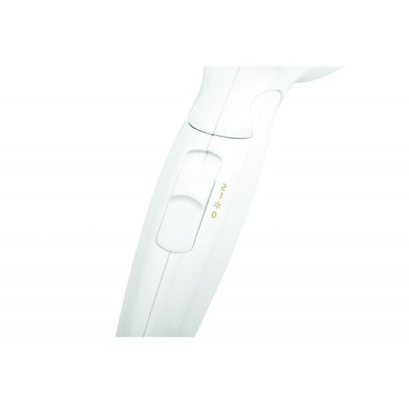 Oceníte praktický tvar a design, výhodou je ergonomicky tvarovaná a sklápěcí rukojeť, díky níž je velmi skladný. Uplatnění najde i závěsné poutko, fén je tak vždy po ruce a ihned připraven k použití. Jeho příkon je 1400 W, nepostrádá dvojitou bezpečnostní ochranu proti přehřátí.