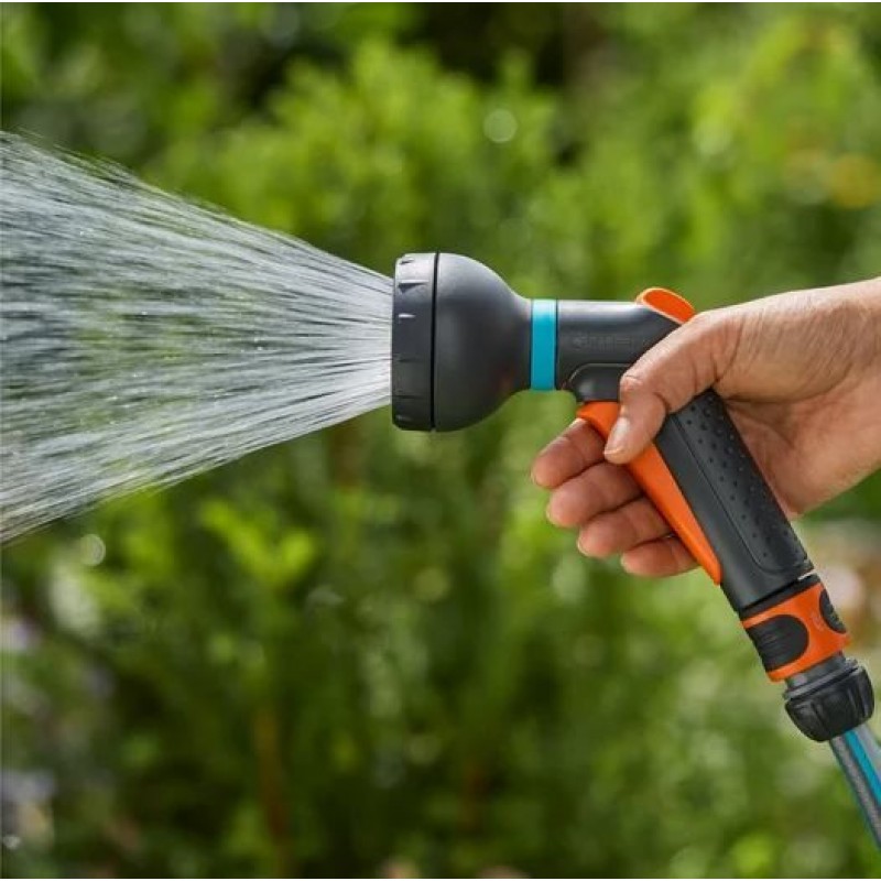 Díky automatické aretaci spouště umožňuje pohodlné používání bez únavy ruky. Odolná konstrukce dovoluje ponechat sprchu venku po celou zahradní sezónu.