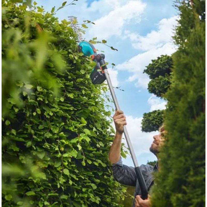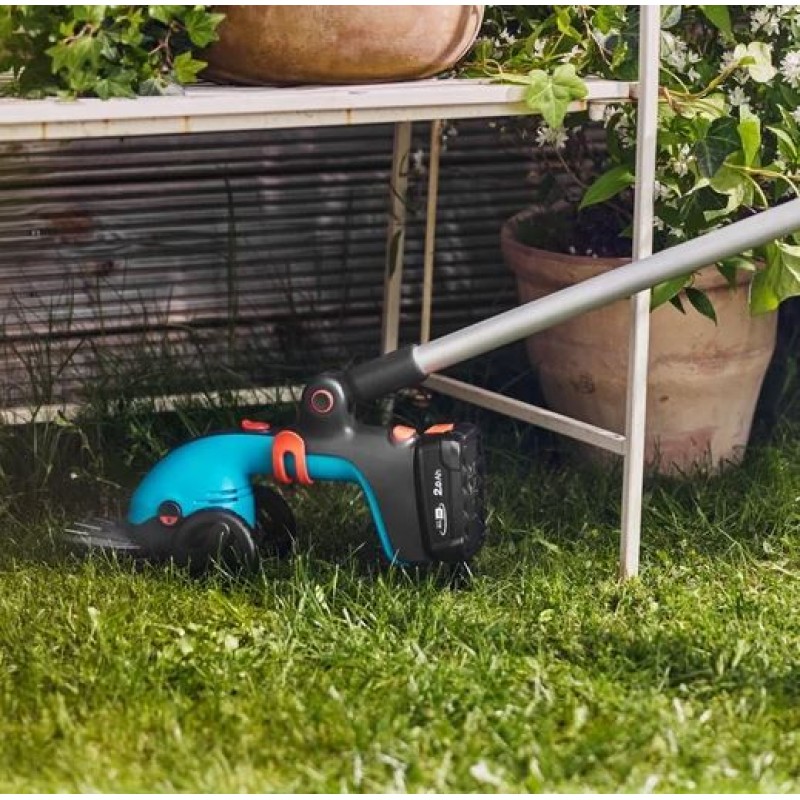 Vysoce kvalitní nože zajišťují čistý a přesný střih, zatímco kloubová rukojeť, kolečka a dlouhá násada usnadňují práci kolem záhonů, laviček nebo herních prvků. Bezdrátové 18V napájení poskytuje maximální flexibilitu bez omezení kabelem. Praktická výměna nožů bez použití nářadí navíc umožňuje rychlé přizpůsobení aktuálním zahradním pracím.