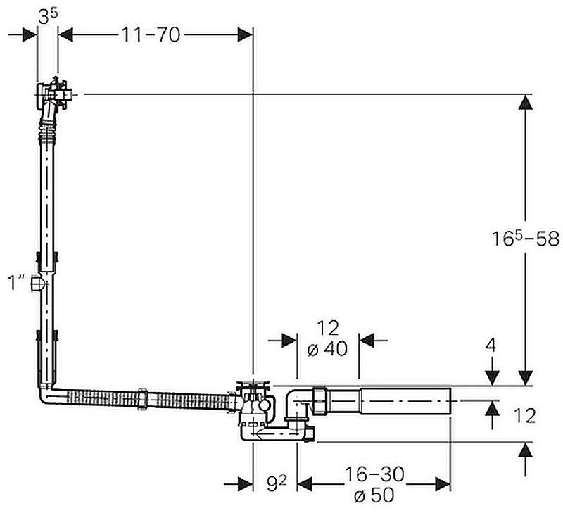 Geberit Vanová odpadní souprava, pochromovaná lesklá 150.525.21.1- pro vany zvláštních rozměrů. prodloužená
