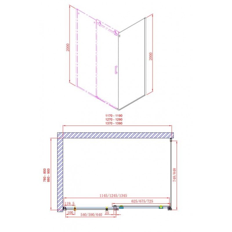 míry splní nároky pro bezbariérový přístup.Bezpečnostní skla 8 mm.Výška zástěn 2 000 mm.