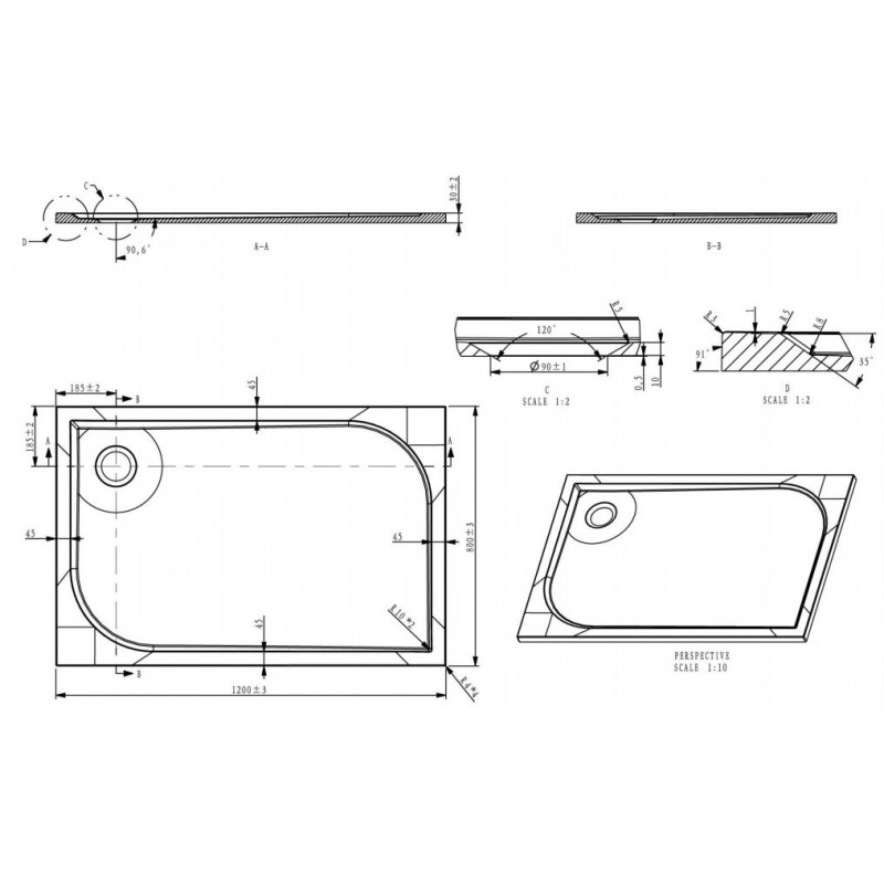 Sprchová vanička z litého mramoru 1200x800mm, obdélník