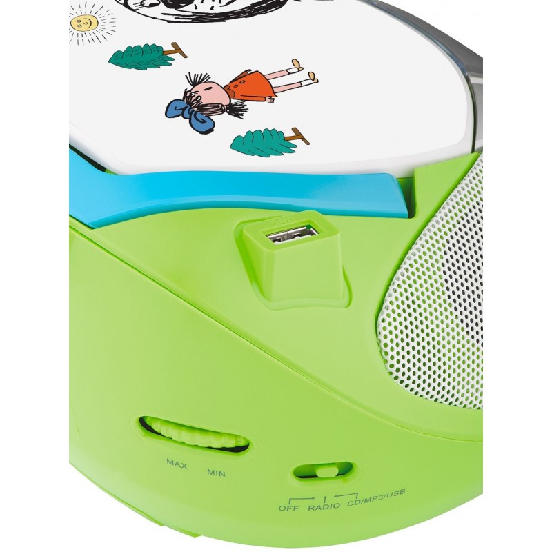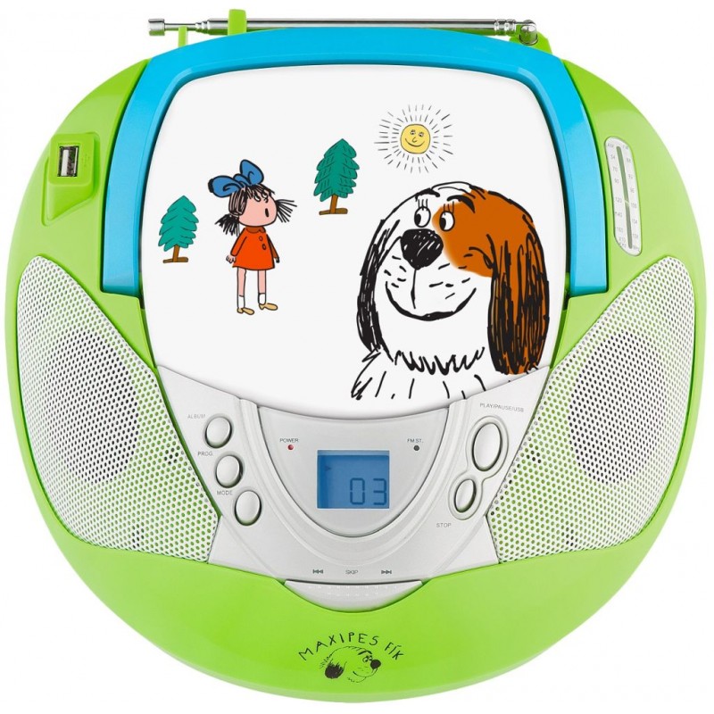 Vyrůstá vám doma budoucí hudební "fajnšmekr" nebo mají vaše děti své oblíbené písničky na CD nebo v MP3 formátu?Do veselého designu s obrázky Maxipsa Fíka jsme zabalili CD přehrávač, který zvládá samozřejmě formáty CD-R/RW, dále analogový FM/AM tuner pro poslech rádia a to vše doplnili USB vstupem pro připojení Flash pamětí nebo externích pevných disků na přehrávání skladeb ve formátu MP3.