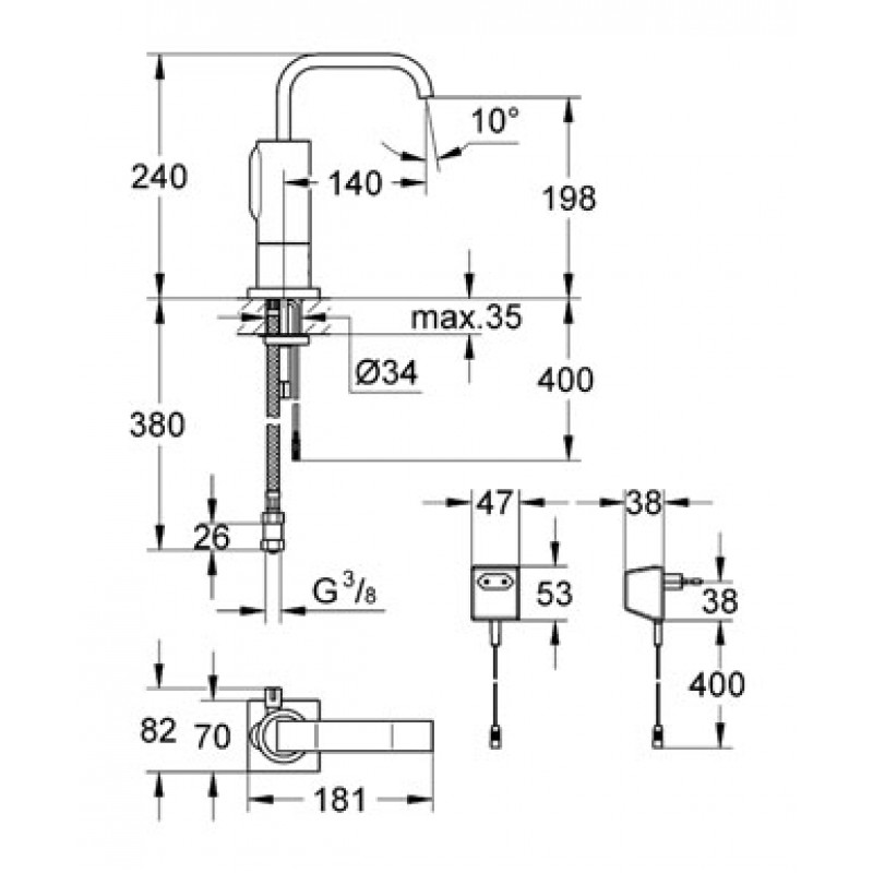 GROHE Allure E Infračervená elektronická baterie se směšováním 36098000- Infračervená elektronická baterie se směšováním DN 15