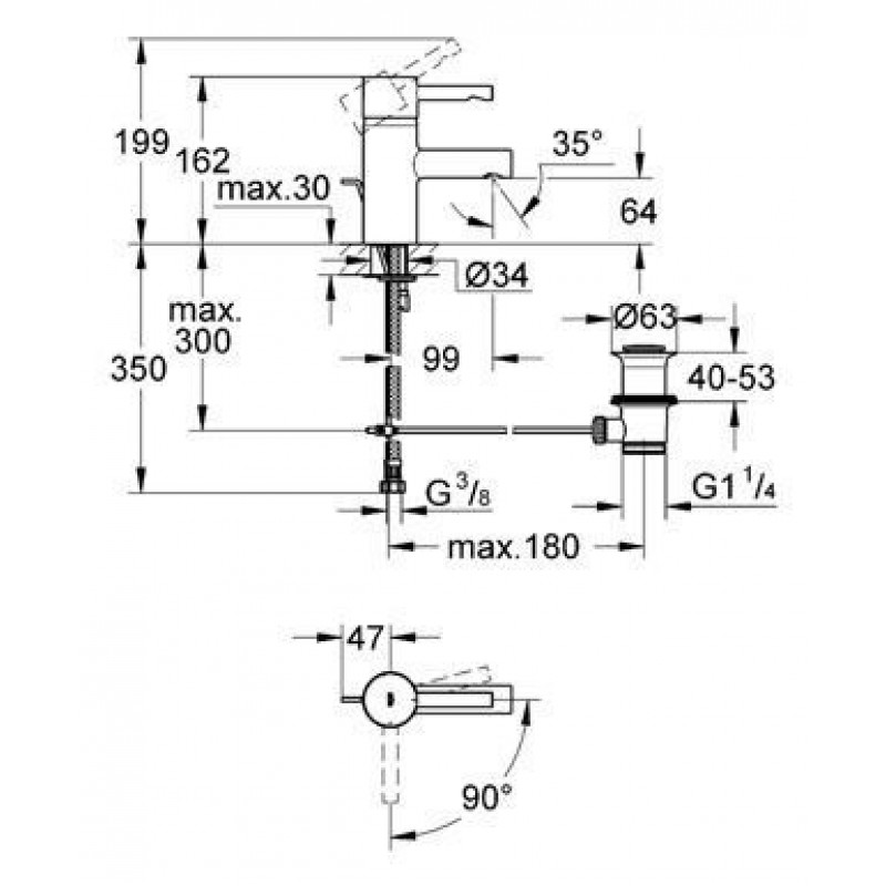 GROHE Essence - Páková umyvadlová baterie ES, chrom 2336900EGrohe Essence 23368 00E jednootvorová montáž