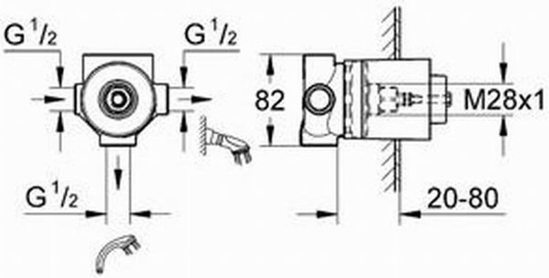GROHE třícestný ventil G 1/2" 29706000podomítkové vestavbové těleso, 1"