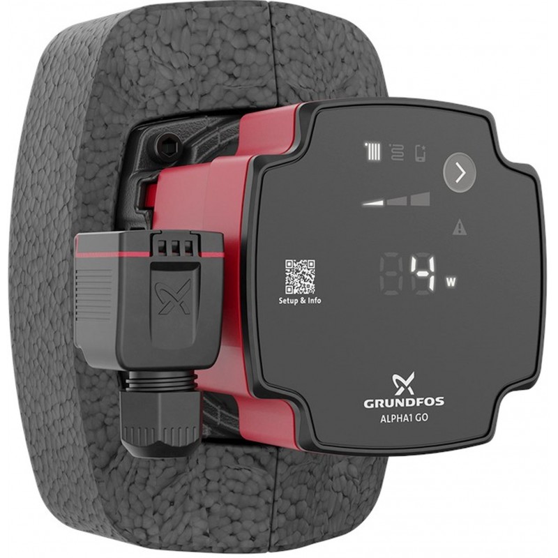 Kompatibilita a výměna: ALPHA1 GO je navrženo pro výměnu čerpadel Grundfos UPS integrovaných v kotlích a sestavách. Umožňuje replikaci křivek původního čerpadla pomocí aplikace Grundfos GO a je vhodné jako náhrada většiny samostatných čerpadel. Kompatibilitu se starším čerpadlem ověříte v aplikaci Grundfos GO.