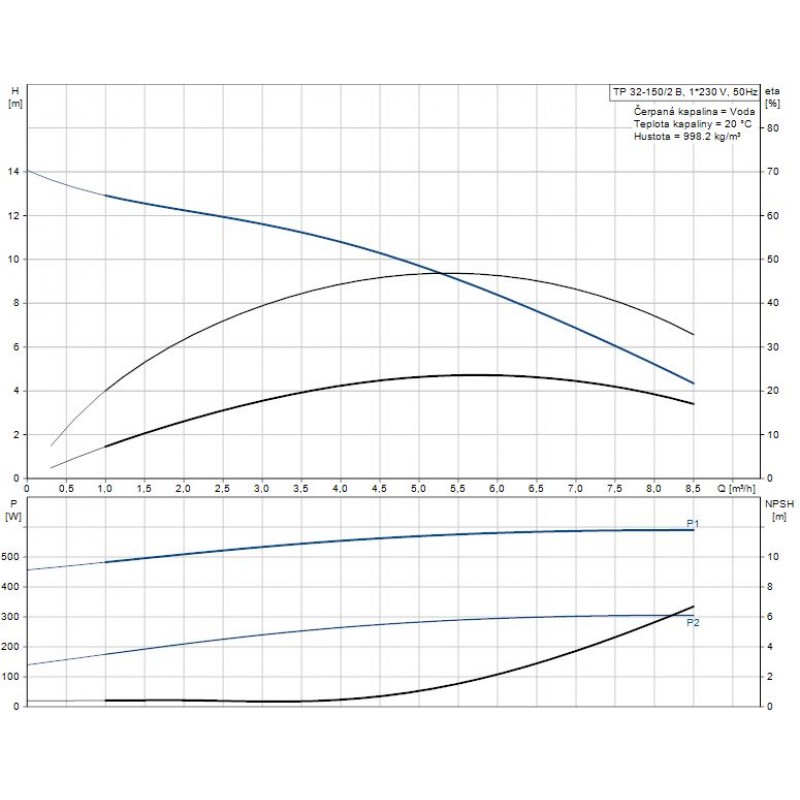 Údaje čerpadla pro dané otáčky: 2865 ot/min
