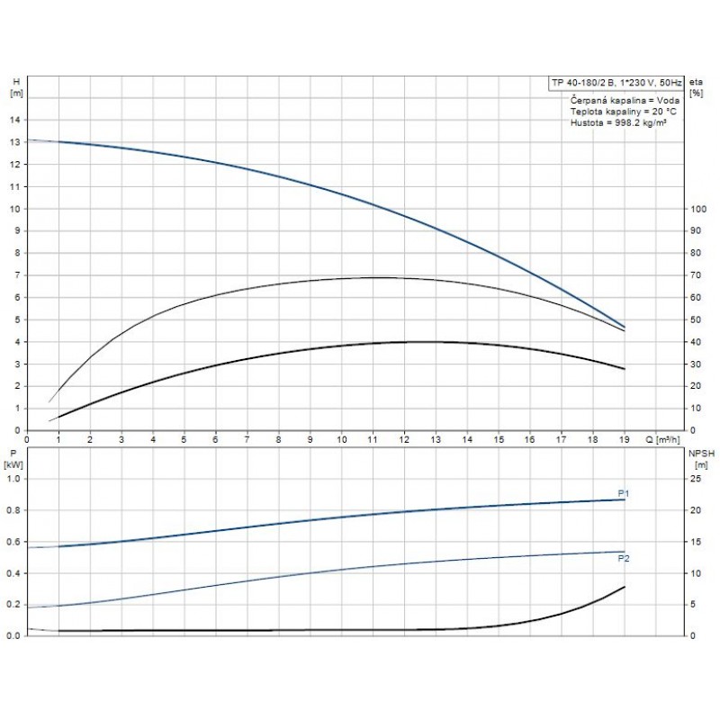 Údaje čerpadla pro dané otáčky: 2860 ot/min